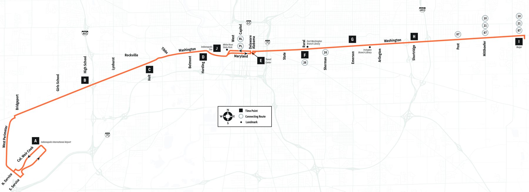 The Central Indiana Regional Transportation Authority (CIRTA) offers the Plainfield Connector, where passengers can transfer at IndyGo’s Route 8 Washington Street stop on the northbound side of Bridgeport Road. The Plainfield Connector travels to Adesa and through the Allpoints Midwest industrial park area, providing access to jobs at Ingram Micro, PDS, Regal, Tempur-Sealy and the Walmart eCommerce Fulfillment Center. It also travels through the Plainfield industrial park area, stopping on Airtech, Whitaker, Reeves and Perry Road. This service makes 24 stops total.
