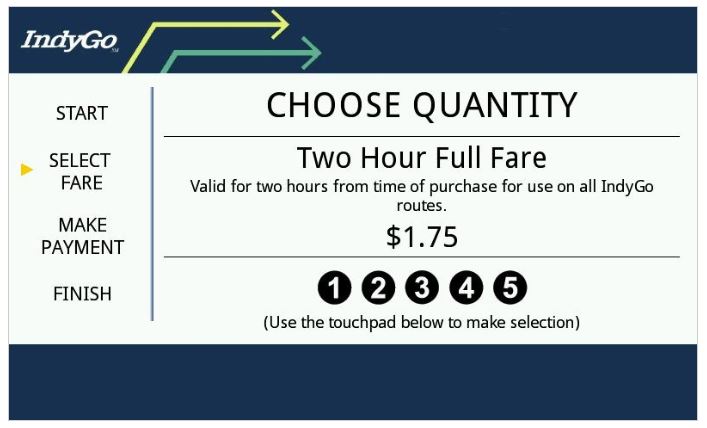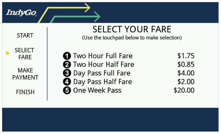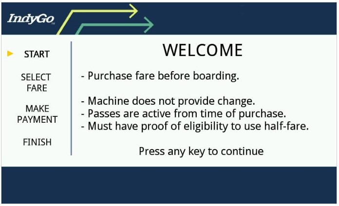 IndyGo is using temporary fare vending machines at Red Line stations and the Julia M. Carson Transit Center until the MyKey system is ready to be launched. Fare Inspectors visually verify the validity of fare on the Red Line.