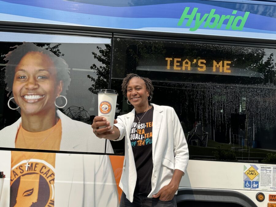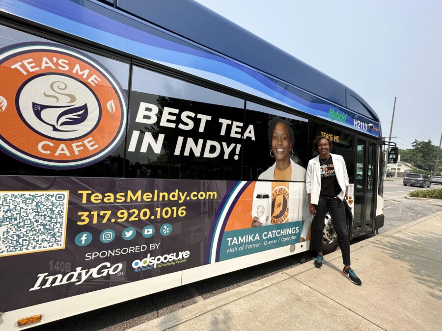 To kick off this new partnership, IndyGo and Adsposure worked with Hall of Famer and Owner/Operator of Tea’s Me Café, Tamika Catchings, to create the first of the new format ads that will soon be seen throughout Indianapolis on IndyGo buses. Tea’s Me Café’s advertisement incorporates designs that span across the windows and down the passenger side of the bus and a QR code that leads directly to the website, as well as features Tamika herself smiling with a cup of tea.